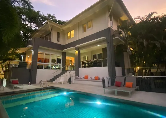 Neben den Annehmlichkeiten für Selbstversorger wie einer voll ausgestatteten Küche bietet die Villa Tree Samui - Unique 5Br Tropical auch einen Essbereich im Freien. Gäste können auch eine Kaffee-/Teemaschine, einen Kühlschrank und Küchenutensilien nutzen, um ihre eigene Mahlzeit zuzubereiten. Verbringen Sie einen schönen Abend im Restaurant Tree Bridge Coffee, das nur 500 Meter zu Fuß von hier entfernt liegt. Die Gäste können die Villa Tree Samui - Unique 5Br Tropical mit dem Auto vom Flughafen Ko Samui in 25 Minuten erreichen.